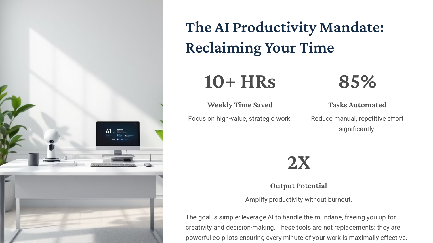 Unlock the power of artificial intelligence and reclaim 10+ hours every week — without burning out.